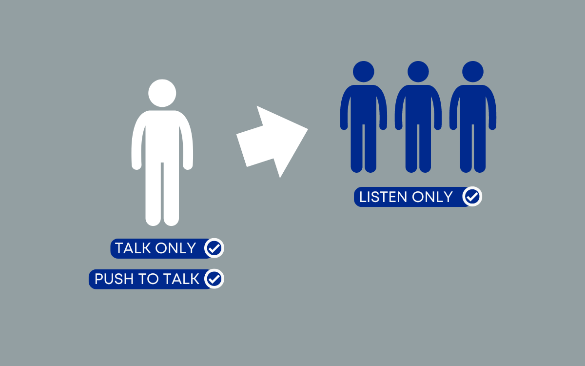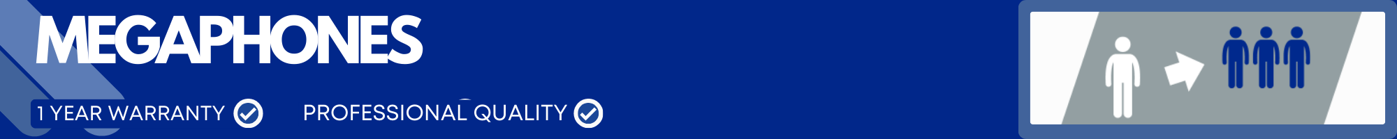 A megaphone is a cost-effective solution for one-way communication with a crowd of people. The presenter pushes the trigger on the handle grip or handheld microphone and talks into the mouthpiece or microphone to have their voice amplified. The guests listen to the amplified sound from the presenter’s megaphone.
