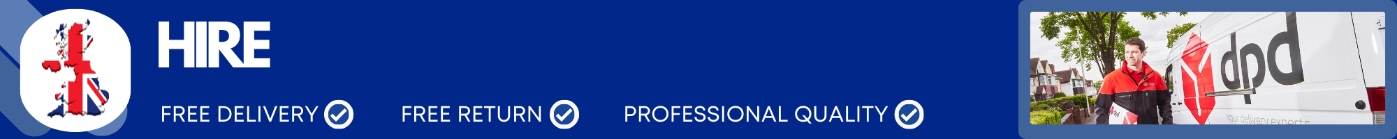 Free tracked delivery the working day before hire starts, free return the working day after hire ends using prepaid shipping label at your nearest drop off location.