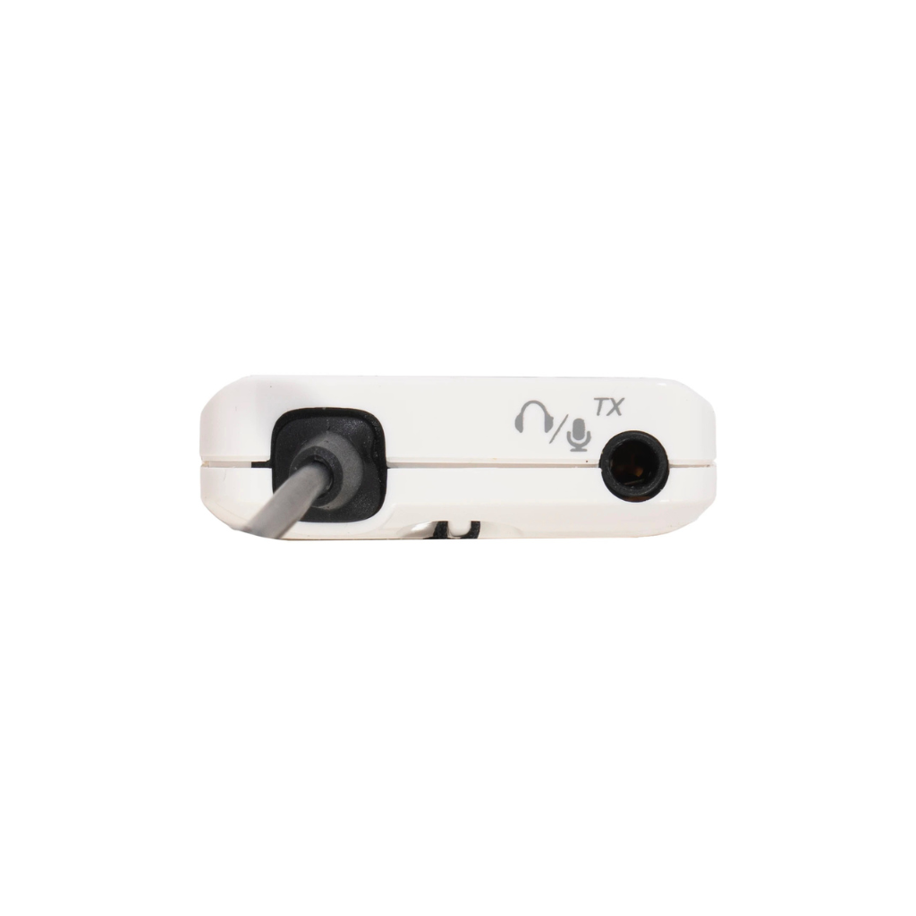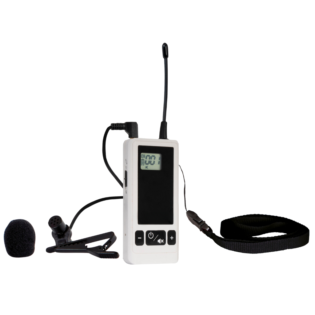 This transmitter is designed to work with a 1-way tour guide system (only the presenter can talk).